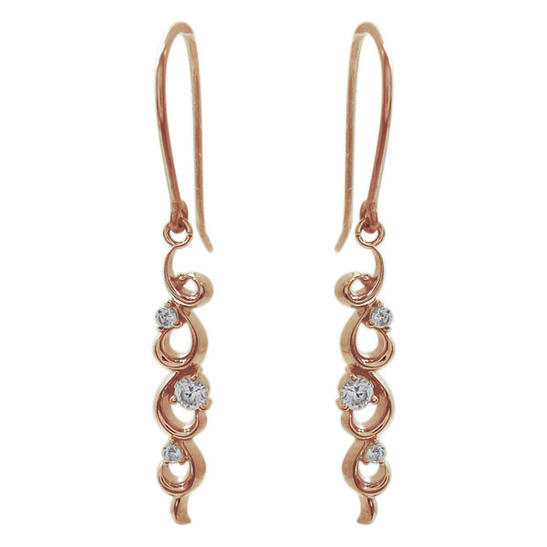 ピアス ダイヤモンド フックピアス 唐草 18金 アメリカンフック
