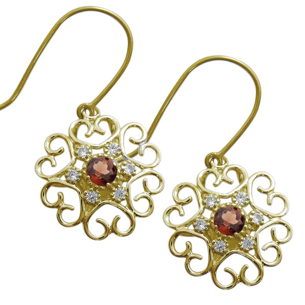 ![]() 1月誕生石ガーネットを使用した、10金製の ハート&フラワー(花)モチーフフックピアス(アメリカンフックピアス)です。 アンティーク調のデザインが、耳元を美しく飾ります。 ご自分へのご褒美や記念日、誕生日プレゼントなどの贈り物にもお勧めです。