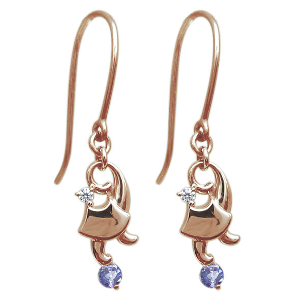 キャット・ピアス・猫ピアス・タンザナイト・フックピアス・18金