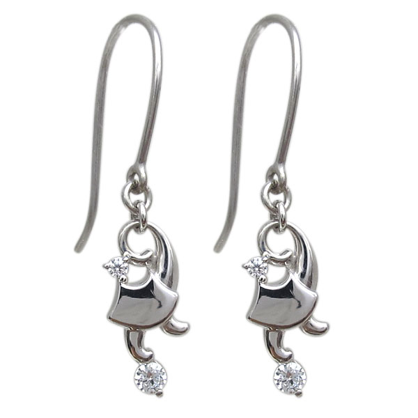 4月誕生石ダイヤモンドを使用した、10金製の猫モチーフフックピアス(アメリカンフックピアス)です。