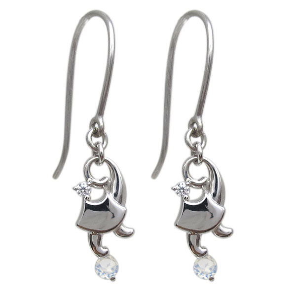 6月誕生石ロイヤルブルームーンストーンを使用した、18金製の猫モチーフフックピアス(アメリカンフックピアス)です。