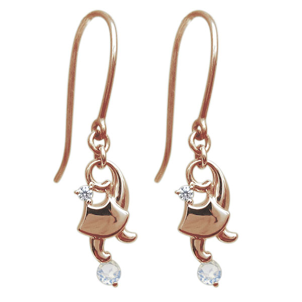 ![]() 6月誕生石ロイヤルブルームーンストーンを使用した、 18金製の猫モチーフフックピアス(アメリカンフックピアス)です。 可愛らしい猫と、ゆらゆら揺れて煌めく誕生石がキュートなフックピアスです。 キュートだけれど、甘くなりすぎない大人女子にぴったりのデザインです。