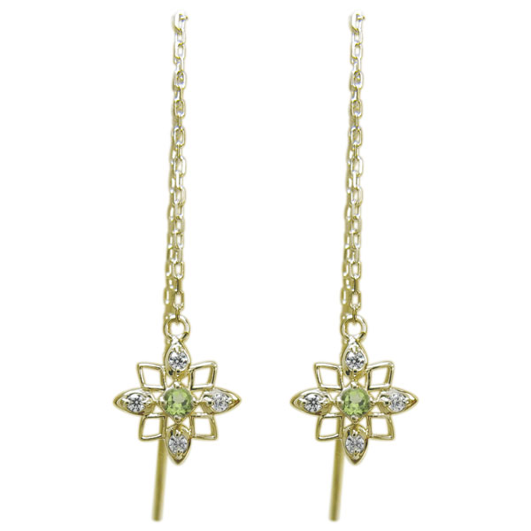 ロングピアス 星ピアス スターピアス ペリドット 18金