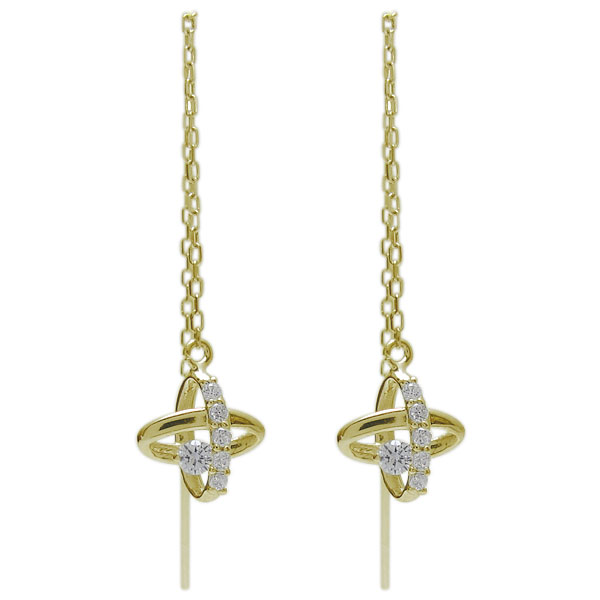 宇宙 ピアス ダイヤモンド 一粒 ロングピアス 10金