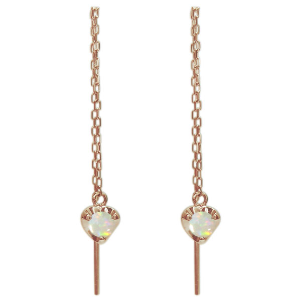 10月誕生石オパールを一粒使用した、18金製のハートモチーフロングピアスです。