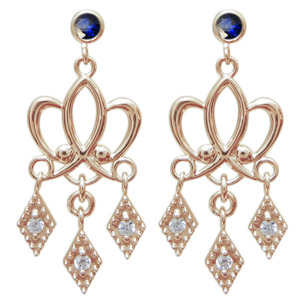 シャンデリア サファイア ピアス 王冠 クラウンピアス K10