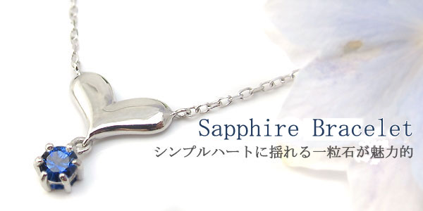 9月誕生石 ・18金・サファイア・ハート・一粒・ブレスレット