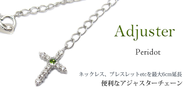 クロス プラチナ チェーン 6cm アジャスターチェーン ペリドット アジャスター