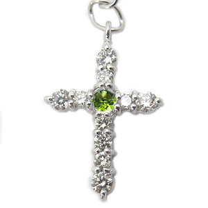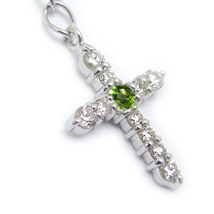 8月誕生石ペリドットを一粒使用したクロスモチーフのプラチナ製アジャスターです。