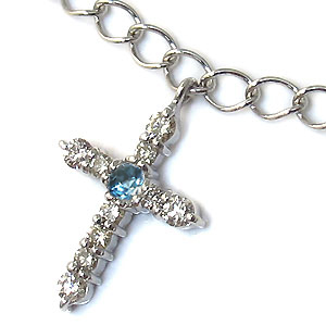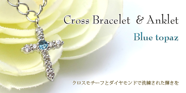 11月誕生石ブルートパーズを一粒使用した、18金製のアンクレット兼用クロスモチーフブレスレットです。
