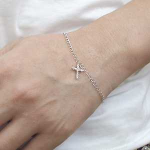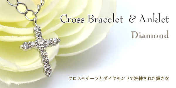4月誕生石ダイヤモンドを一粒使用した18金製のクロスモチーフブレスレットです。