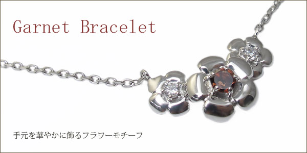 1月誕生石ガーネットを使用したフラワーデザインの18金製ブレスレットです。