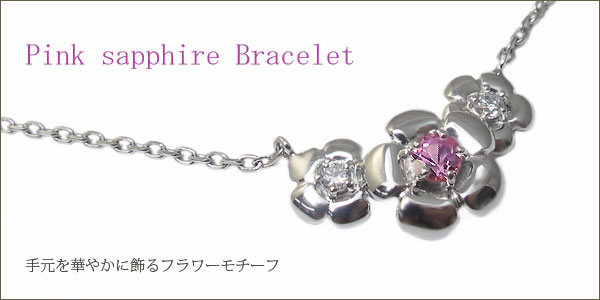 9月誕生石ピンクサファイアを使用したフラワーデザインの18金製ブレスレットです。