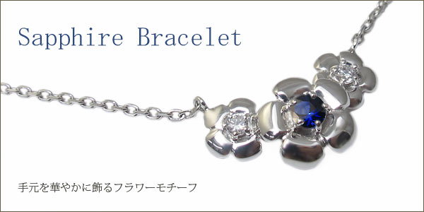 9月誕生石サファイアを使用したフラワーデザインのプラチナ製ブレスレットです。