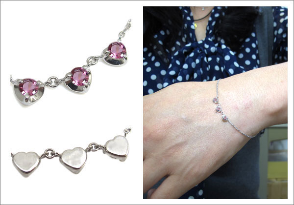 10月誕生石ピンクトルマリンを使用したハートモチーフの18金製トリロジーブレスレットです。 記念日や誕生日プレゼント自分へのご褒美、クリスマスプレゼント、結婚記念日などの贈り物にお勧めです。 | ||||||||||||||