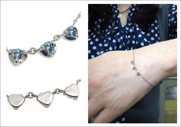 ![]() 3月誕生石アクアマリンサンタマリアを使用したハートモチーフのプラチナ製トリロジーブレスレットです。 記念日や誕生日プレゼント自分へのご褒美、クリスマスプレゼント、結婚記念日などの贈り物にお勧めです。