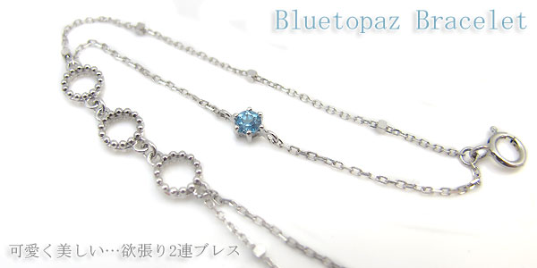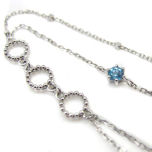 11月誕生石・ミル打ち・2連・18金・一粒・ブルートパーズ・ブレスレット