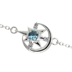 11月誕生石ブルートパーズを使用した10金製の三日月(ムーン)と星(スター)モチーフブレスレットです。