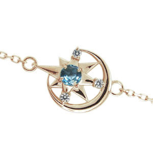 ブルートパーズブレスレット 月 星 モチーフ アンクレット K10 チェーン