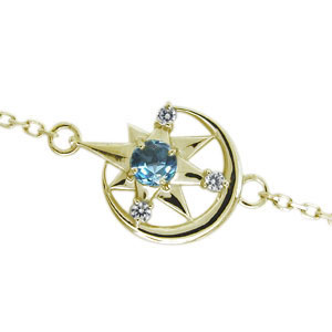 | 11月誕生石ブルートパーズを使用した 三日月(ムーン)と星(スター)をモチーフにした10金製のブレスレットです。 煌めく天然石の星を、艶やかに光る三日月が包み込んだ可愛らしいブレスレットです。 別売りのアジャスターでアンクレットとしてもお使いいただけます。 | |||||||||||||||