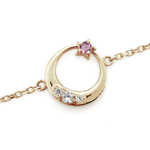 ![]() 10月誕生石ピンクトルマリンを使用した、 18金製の三日月(ムーン)星(スター)モチーフアンクレットです。 煌めく天然石の星が、艶やかに光る月に寄り添った可愛らしいアンクレットです。