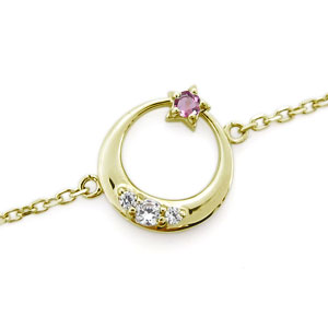 月 星 アンクレット ピンクトルマリン アンクレット 18金 ブレス