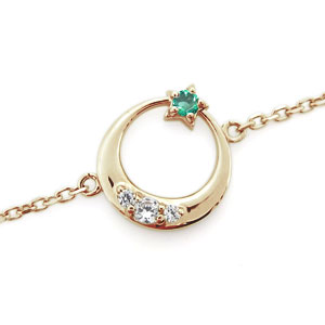 月 星 アンクレット エメラルド アンクレット 18金 ブレス