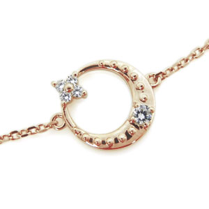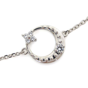 ![]() 4月誕生石ダイヤモンドを使用した、 18金製の三日月(ムーン)星(スター)モチーフアンクレットです。 煌めく天然石の星が、艶やかに光る月に寄り添った可愛らしいアンクレットです。