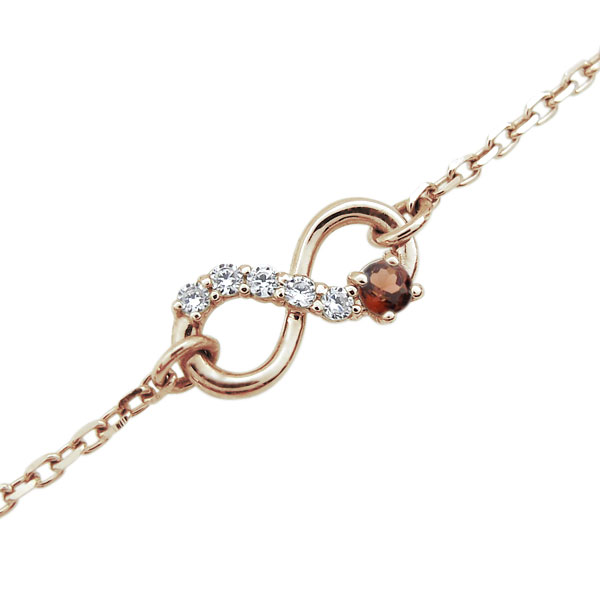 1月誕生石ガーネットを使用した10金製のインフィニティ(無限)モチーフアンクレットです。