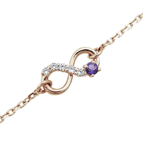2月誕生石アメジストを使用した18金製のインフィニティ(無限)モチーフアンクレットです。