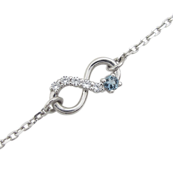 3月誕生石アクアマリンサンタマリアを使用した10金製のインフィニティ(無限)モチーフアンクレットです。