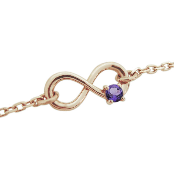 2月誕生石アメジストを使用した、18金製のインフィニティ(無限)モチーフアンクレットです。