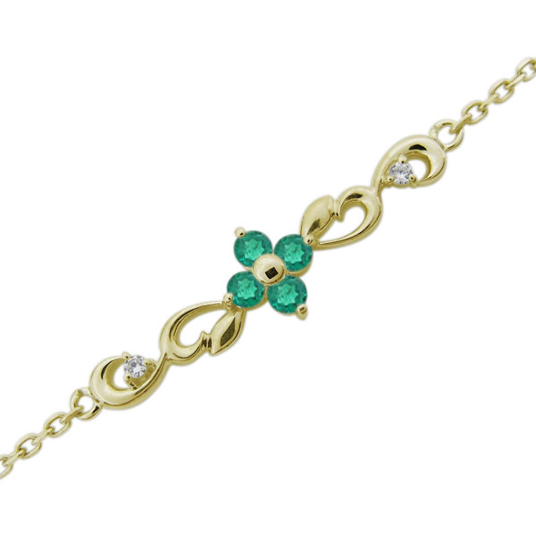 エメラルド フラワーブレスレット 唐草 アンクレット アラベスク