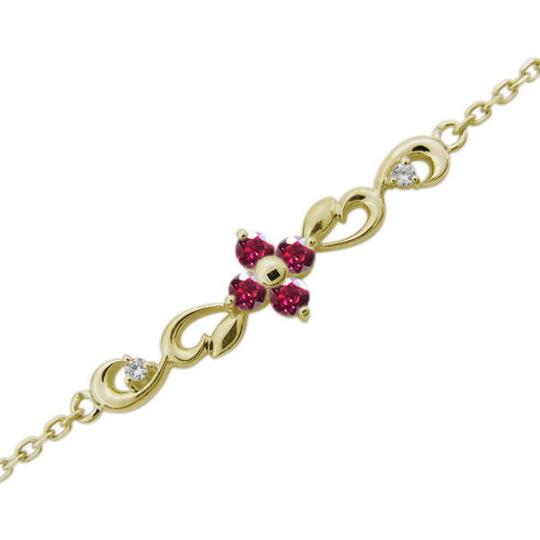 ルビー アンクレット フラワー ブレスレット唐草 K18 アンクレット
