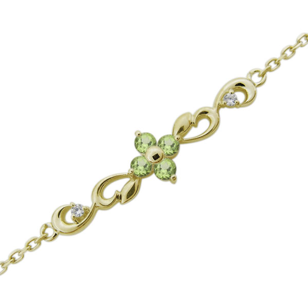 8月誕生石ペリドットを使用した10金製の唐草(アラベスク)&花(フラワー)モチーフブレスレットです。