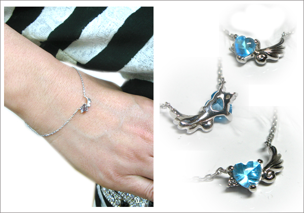 ブレスレット・ブルートパーズ・プラチナ・羽根・ハート
