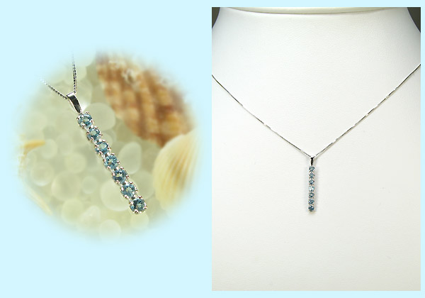 | 11月誕生石ブルートパーズを7石使用した、10金製のシンプルなラインネックレスです。 記念日や誕生日プレゼントなどの贈り物にもお勧めです。 |