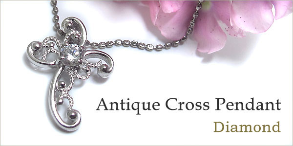 4月誕生石ダイヤモンドを一粒使用したアンティークデザインのプラチナ製ネックレスペンダントです。