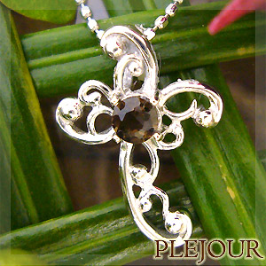 スモーキークォーツペンダント K18WG クロス 誕生石 ネックレス アジアンフェアリー ペンダント