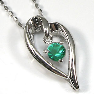 5月誕生石エメラルドを一粒使用したハートモチーフの18金製ペンダントネックレスです。