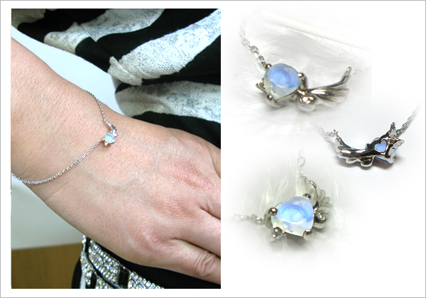 ブルームーンストーン・ブレスレット・18金・羽根・ハート