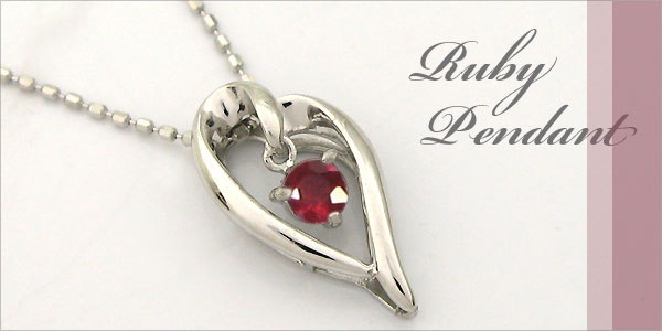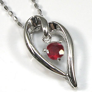 ルビー・一粒・ペンダント・プラチナ・ハート・ネックレス