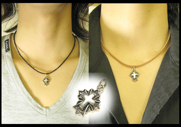 シルバーペンダント・革ひも・クロス・メンズ・ネックレス