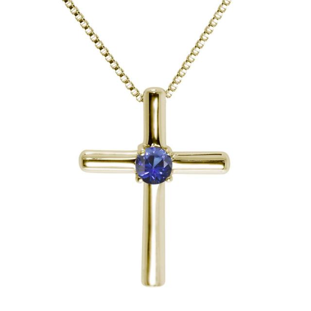 サファイア ネックレス 18金 クロス ネックレス 18k ペンダント レディース 9月誕生石 十字架 シンプル メンズ