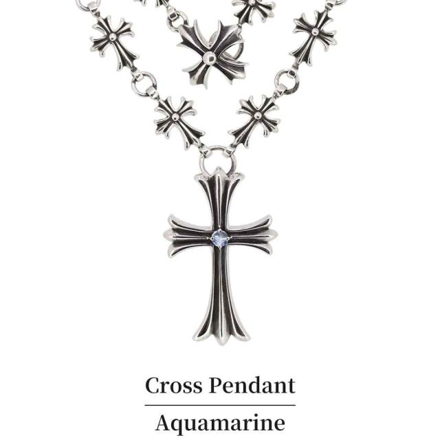 3月誕生石アクアマリンサンタマリアを使用した、シルバー製のクロスネックレスです。