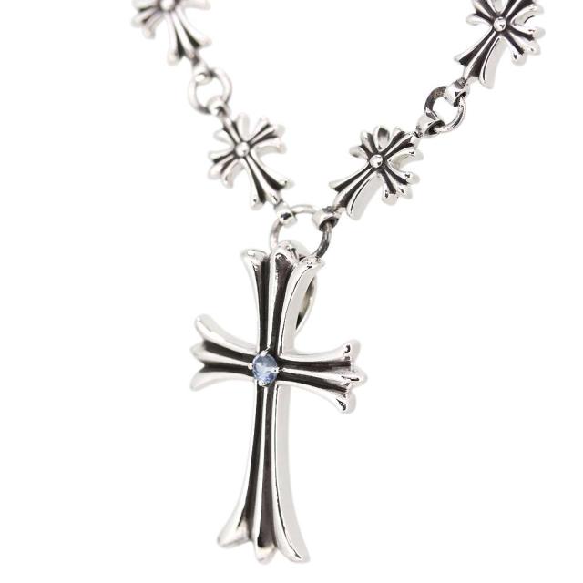 クロス ネックレス シルバー メンズ アクアマリン ペンダント SV925 ネックレス