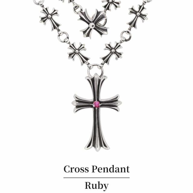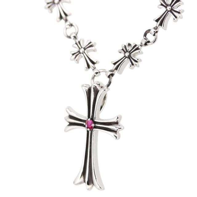 メンズ ネックレス クロス シルバー ルビー ペンダント SV925