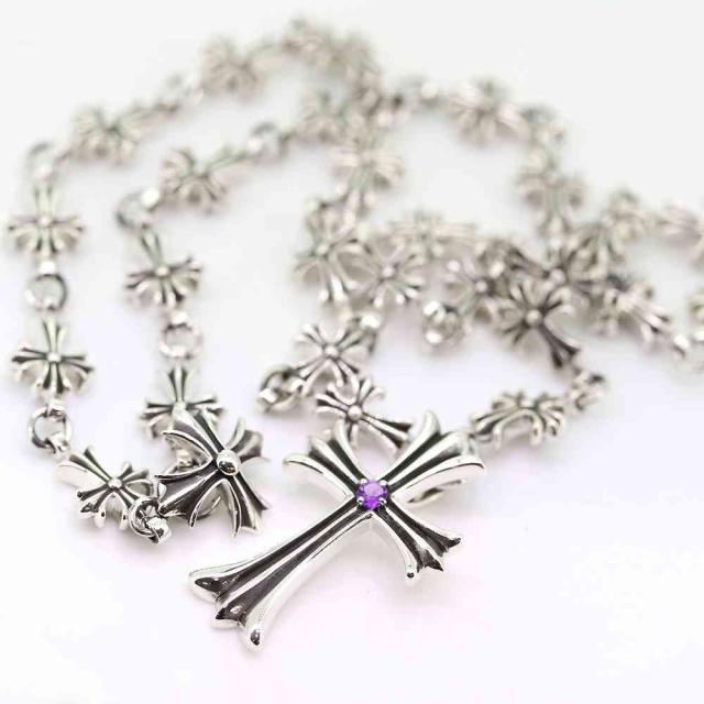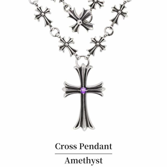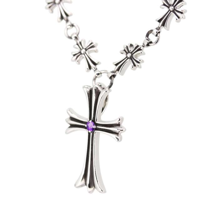 クロス ネックレス シルバー メンズ アメジスト ペンダント SV925