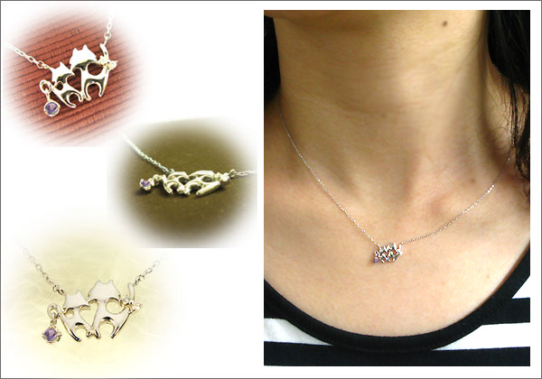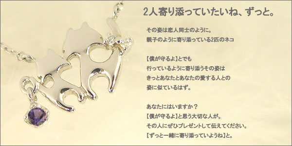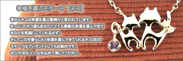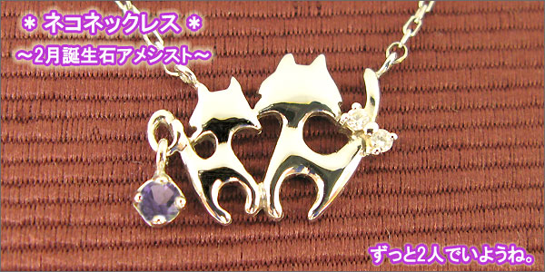 2月誕生石アメジストを一粒使用した猫(ネコ)モチーフの