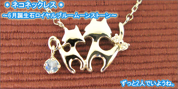 ロイヤルブルームーンストーン・ネックレス・18金・一粒・ネコ